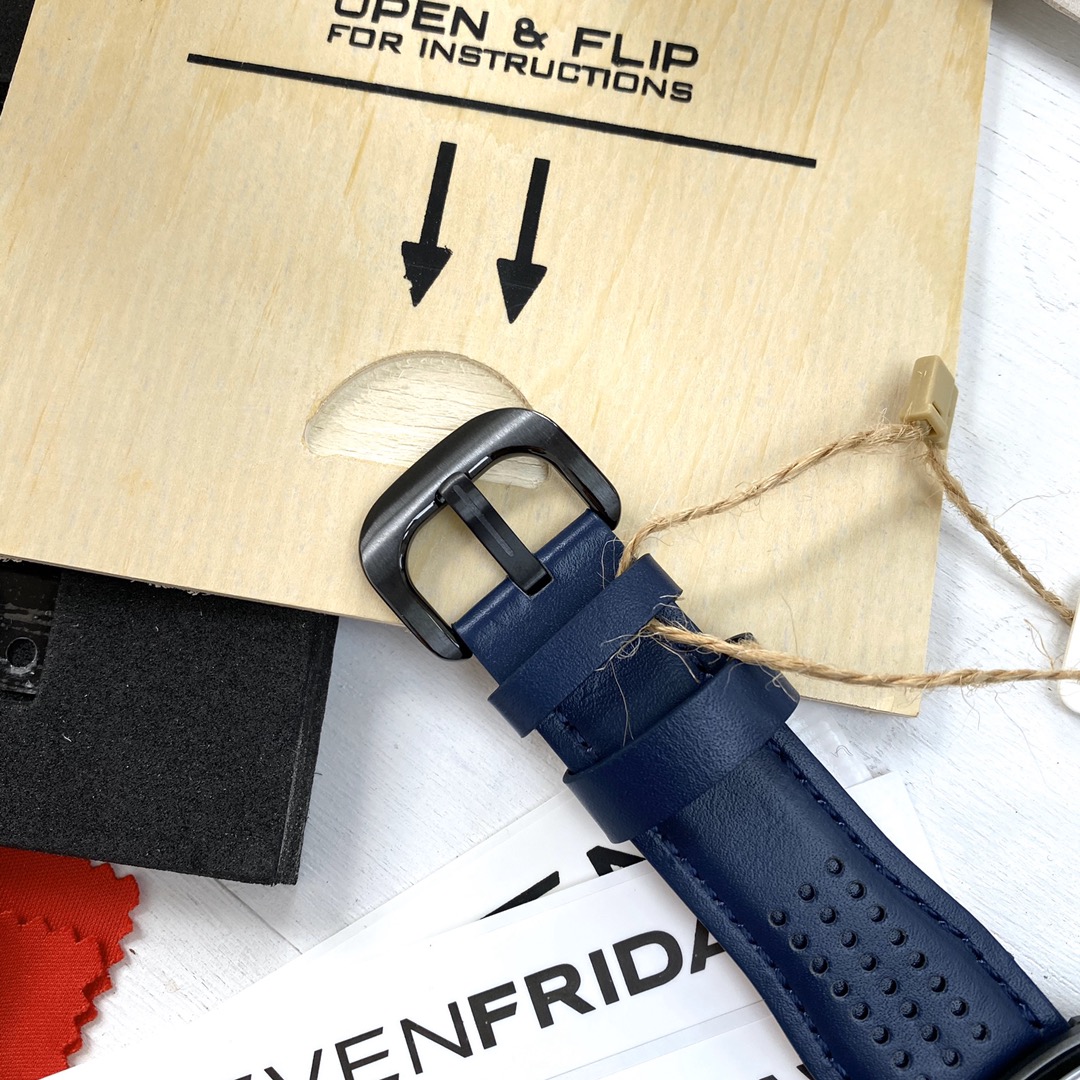 K1强化矿物质玻璃 多层面渐变蓝色半透明表盘设计 白色和红色印刷读数 指针带夜光涂层 蓝色小牛皮表带加同色绣线 红色内衬 佩戴舒适耐用