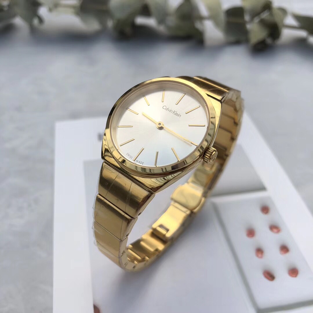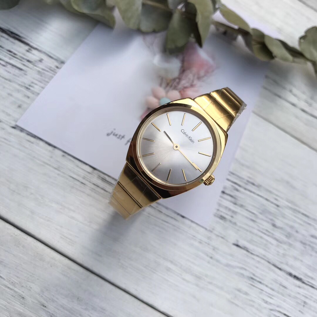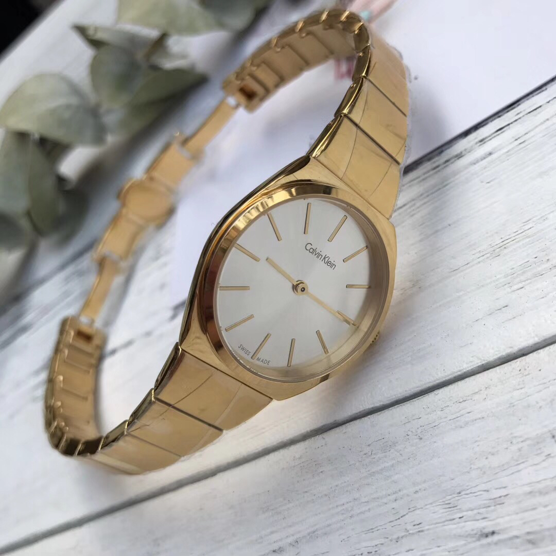 原装 CK(CalvinKlein SUPREME MINI 系列) 手镯型钢带女表,简洁两针表盘,递减宽度表带,极具层次感;
