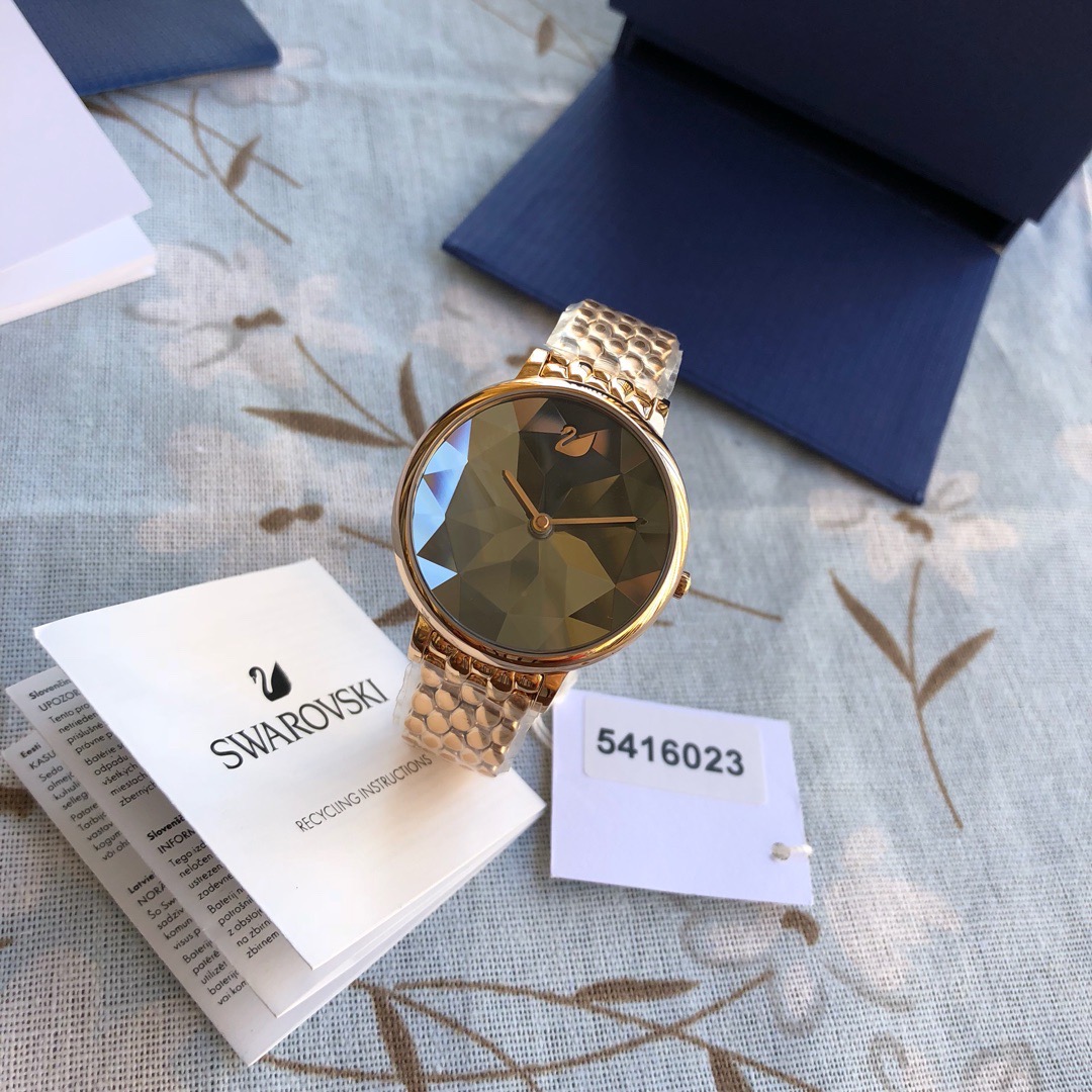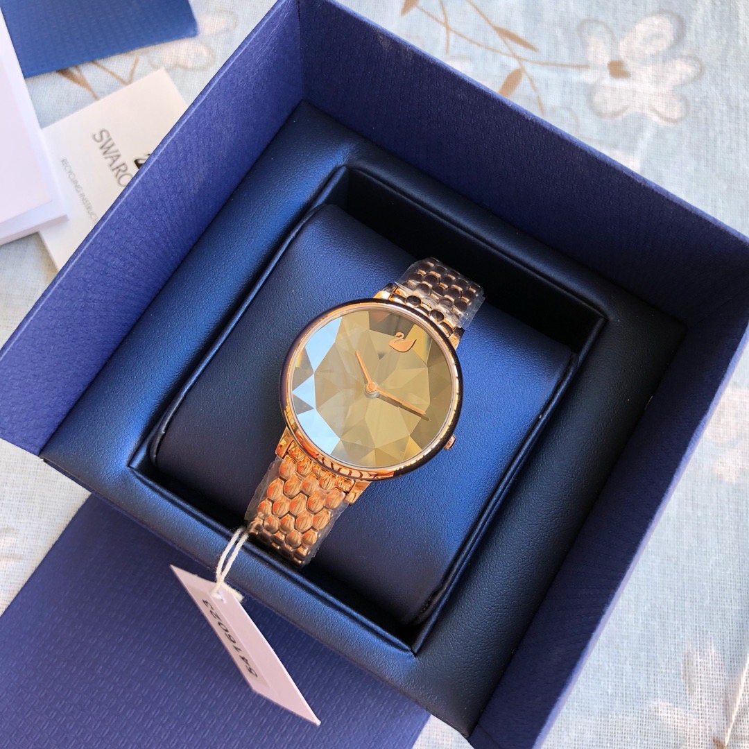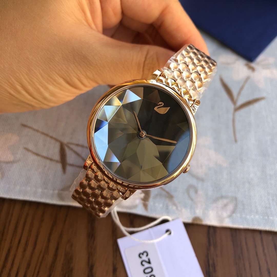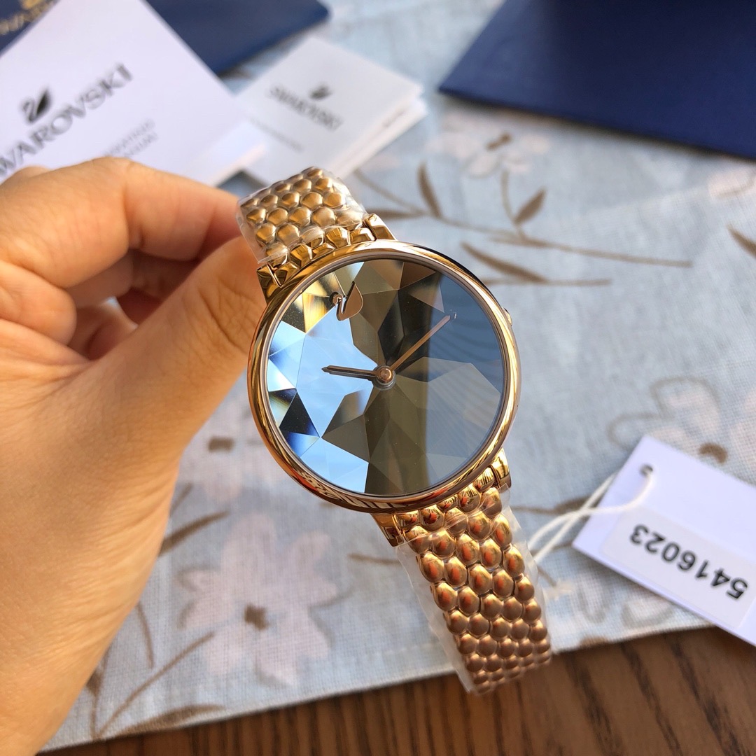 施华洛世奇小天鹅Crystal Lake系列,表盘是由一整件闪亮迷人的Swarovski蓝宝石水晶,采用钻石切割工艺制成八心八箭团,别树一格,适合日常装扮增添闪亮魅力的时尚女性;