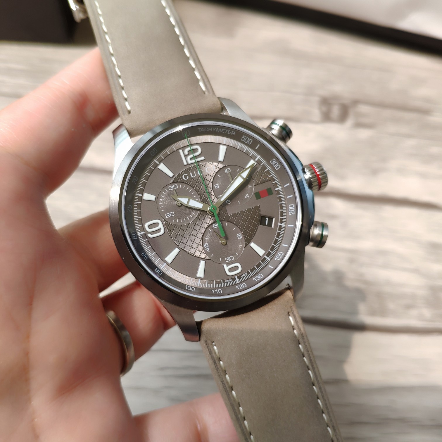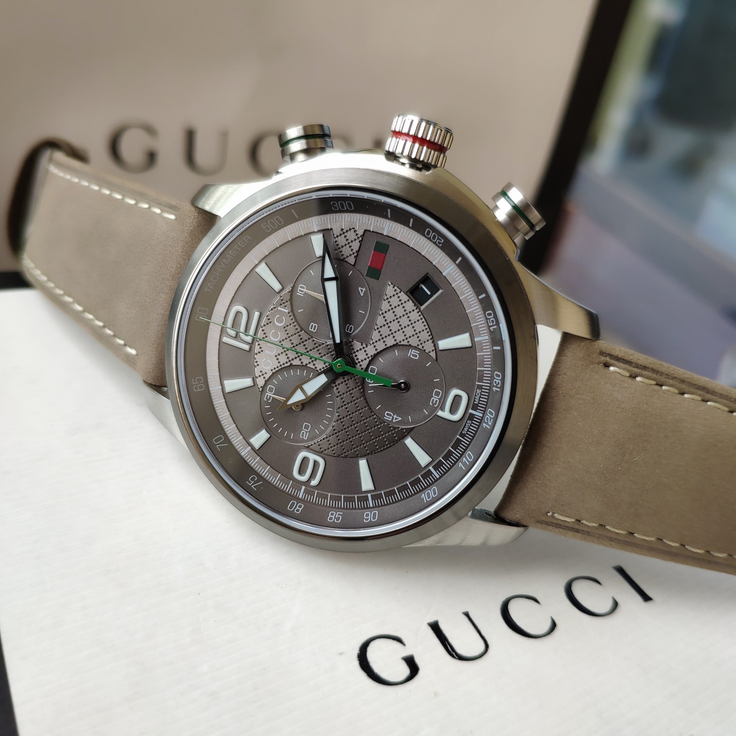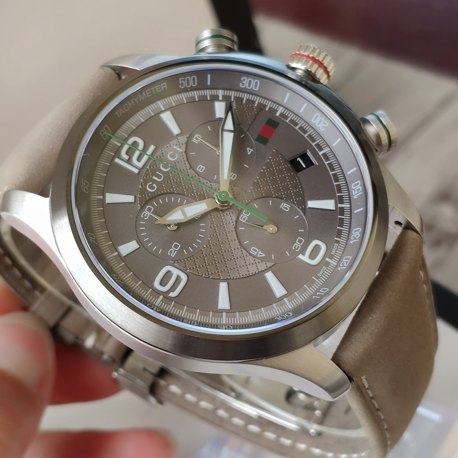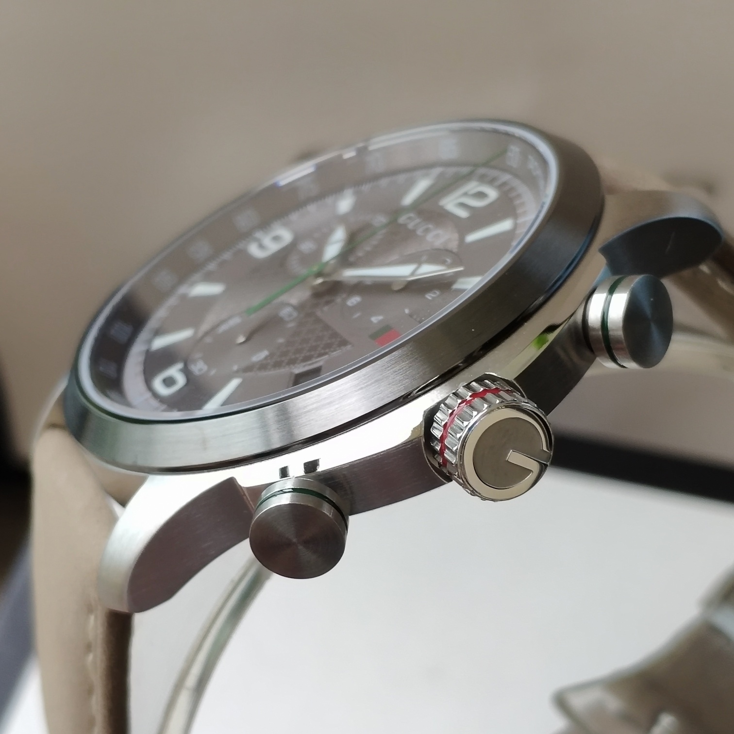 Gucci古驰原厂小蜜蜂六针石英男表,43mm,原装瑞士机芯,蓝宝石玻璃,注意细节对比。防水50m,强力推荐,好货!全套包装!