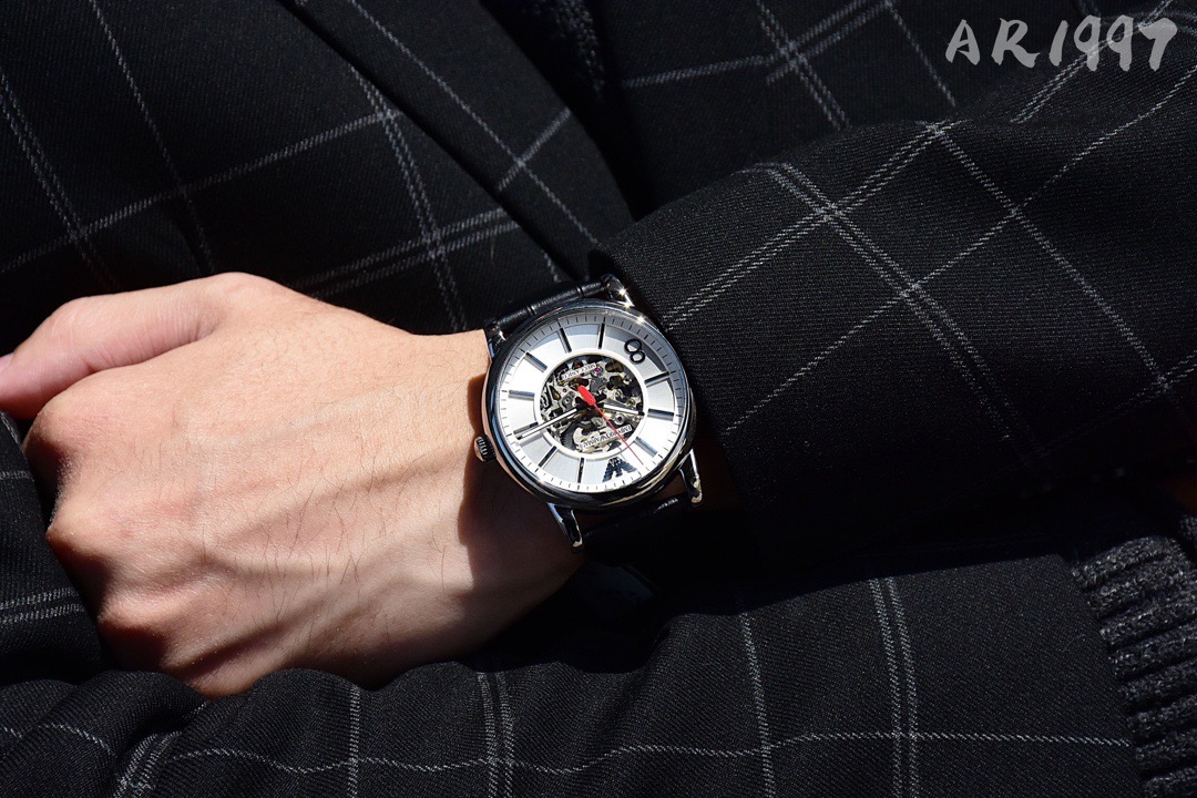 镂空表盘,强化矿物质表盘玻璃,原装日本西铁城自动机械机芯,进口牛皮表带;