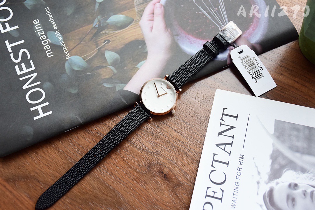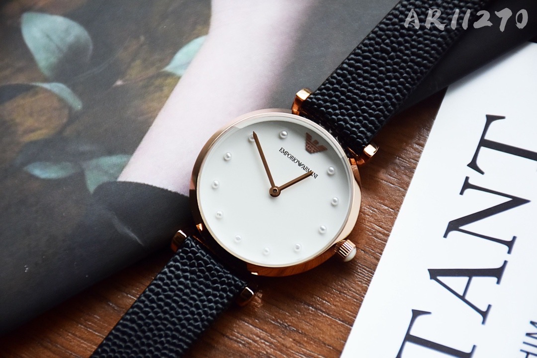纯净白皙表盘,晶莹细腻白珍珠点缀,搭配清新黑色纹路表带,轻奢典雅的气质恰到好处 (所有原单型号可上网搜索_底盖附有相应型号二维码)。