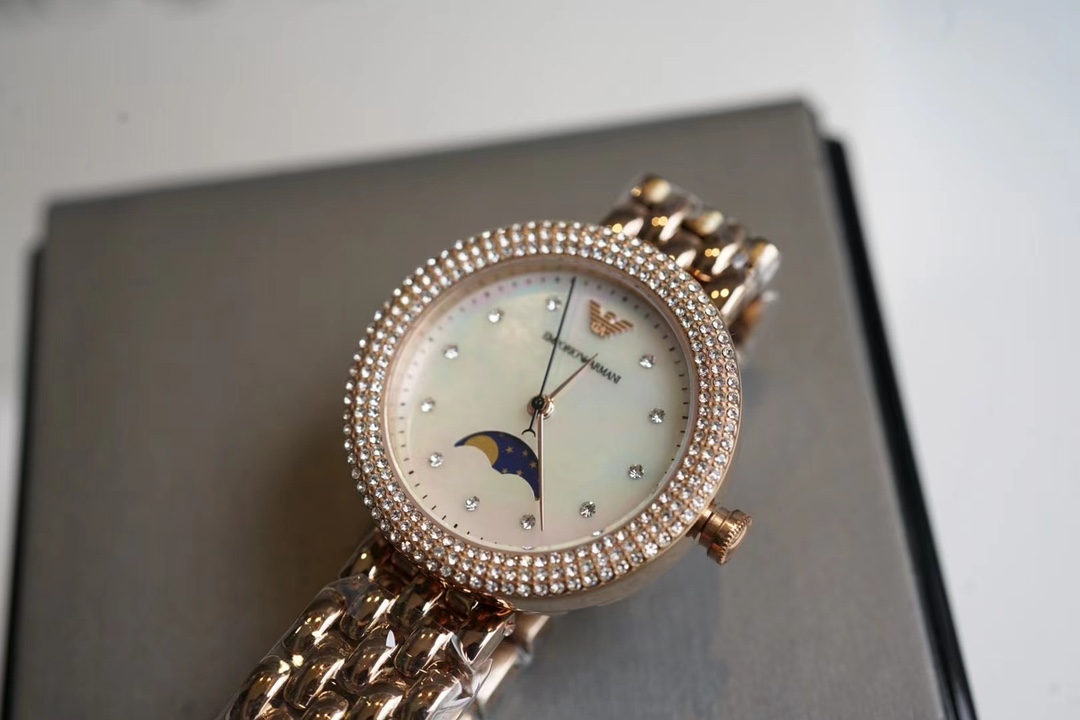最新款阿玛尼日月相手表,复制了浪琴心月月相同款款式;