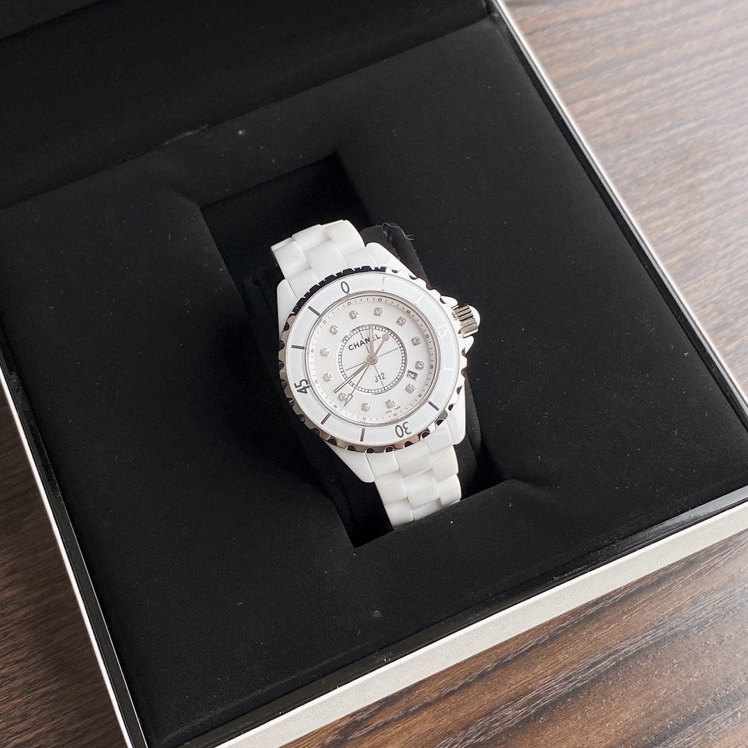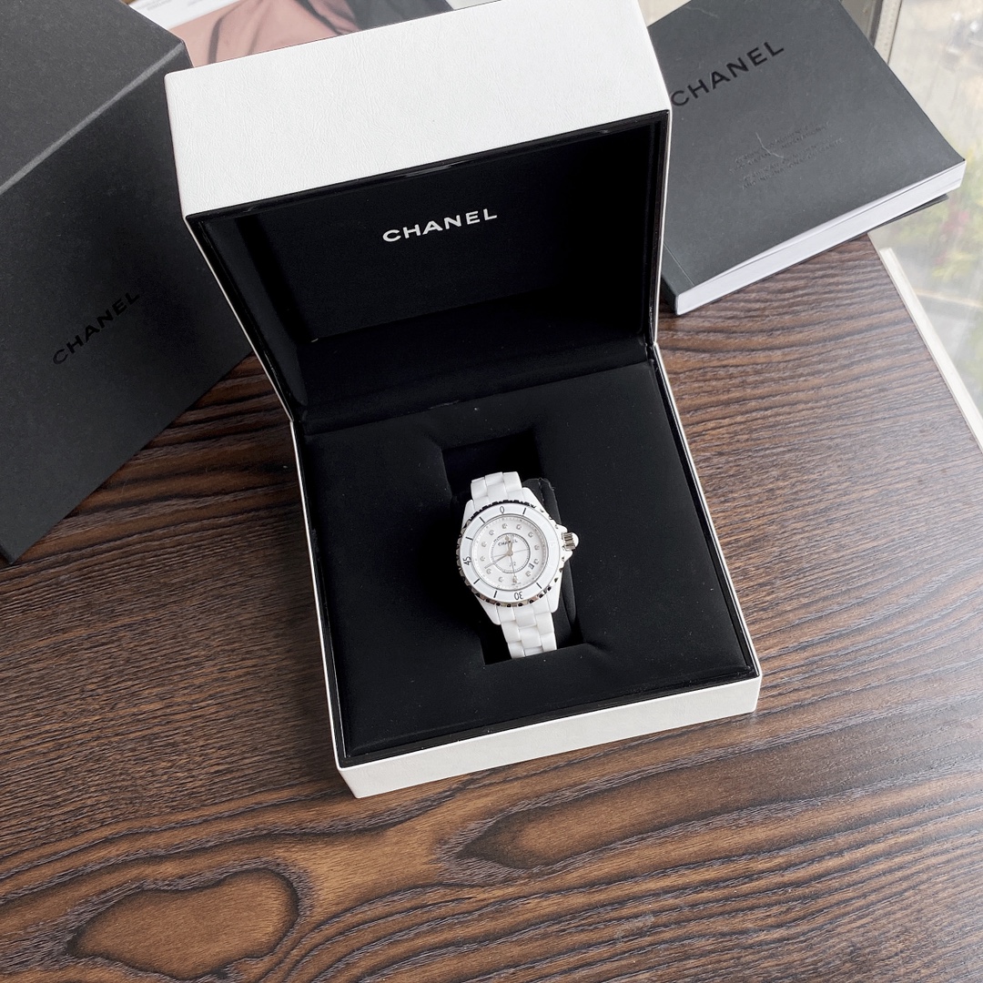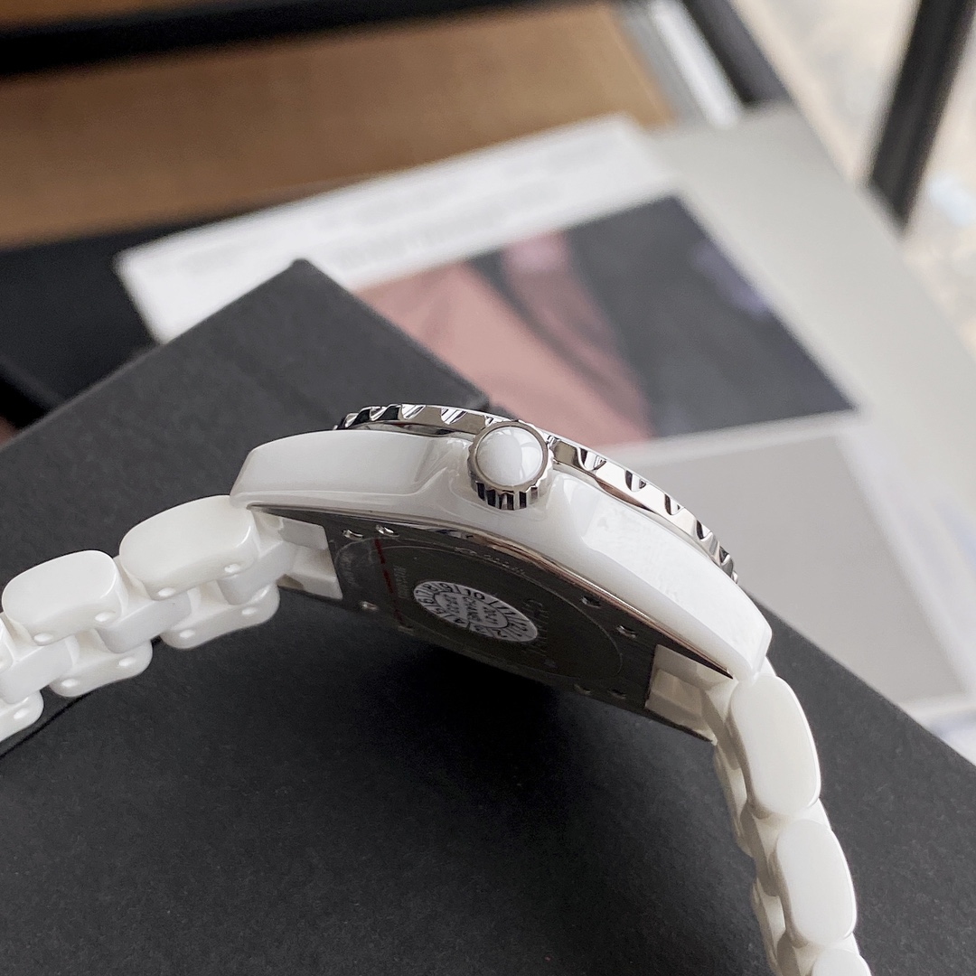 CHANEL香奈儿J12系列,高科技精密陶瓷搭配精钢旋入式表冠,蓝宝石玻璃镜面,原装石英机芯33mm尺寸。