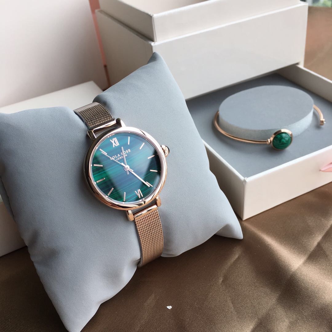 钛金色黑盘,LOLA的满天星款 ,手表加手镯配饰标志性的色彩搭配经久耐用的细长的表带,典型的时尚式新花样;