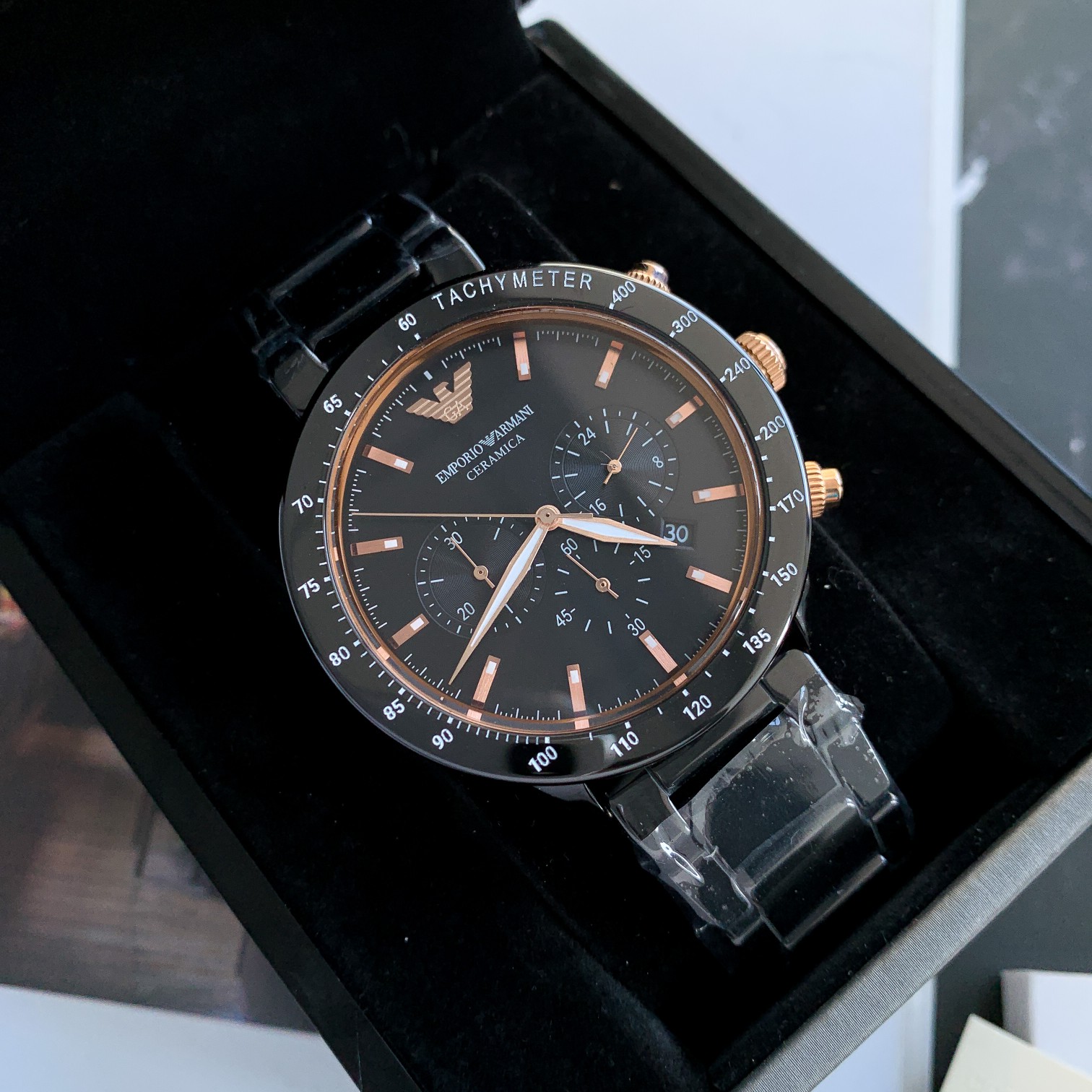阿玛尼最火的一款,型号AR70002精品陶瓷表带、表壳表盘直径43mm 316精钢表带,深邃神秘表盘,秒表盘,蝴蝶双按扣,设计超级精致,表盘表链都都十分简约大气,整个气质马上不一样了,生活防水30米。